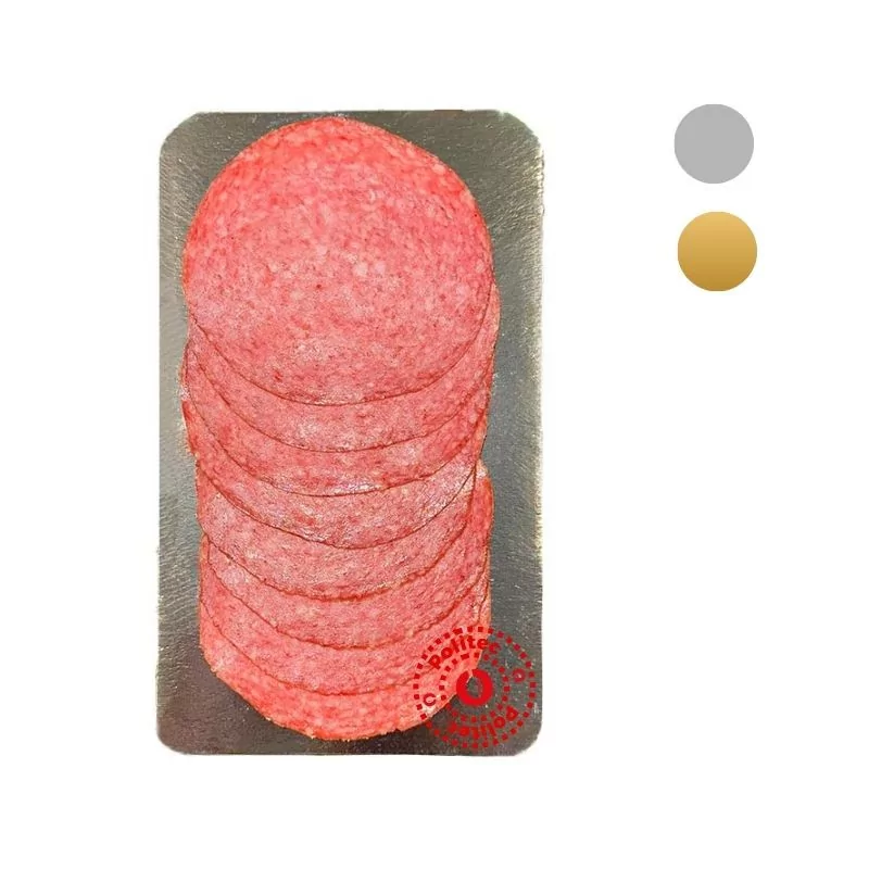 + infosLot de 100 plaques à saumon en carton rigide or et argent avec coins arrondis.