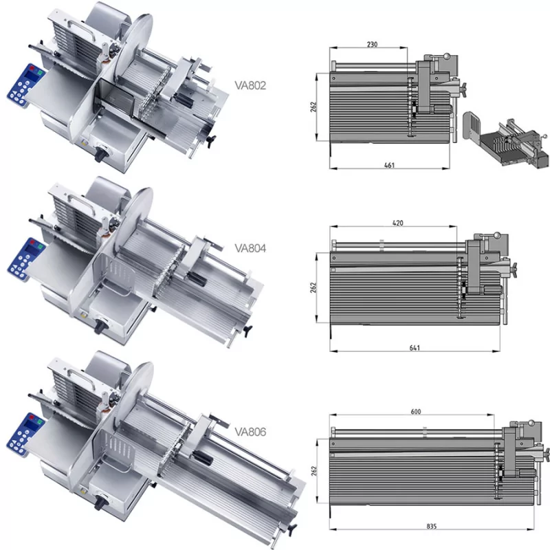La trancheuse automatique VA804 offre un grand confort de travail à l'utilisateur grâce à son ingénieux système de découpe et de dépose sans contact des tranches. L'utilisateur n'a plus à manipuler le chariot et la lame, il se concentre uniquement sur la quantité et la disposition des tranches, la trancheuse s'occupe du reste.