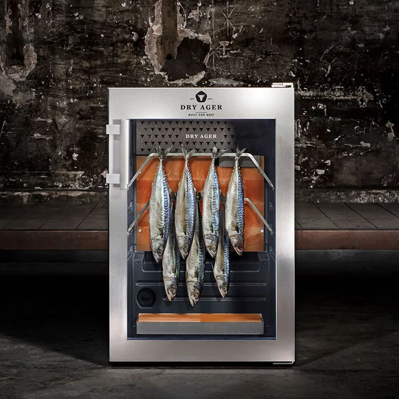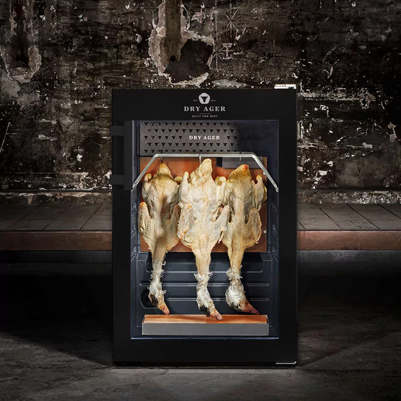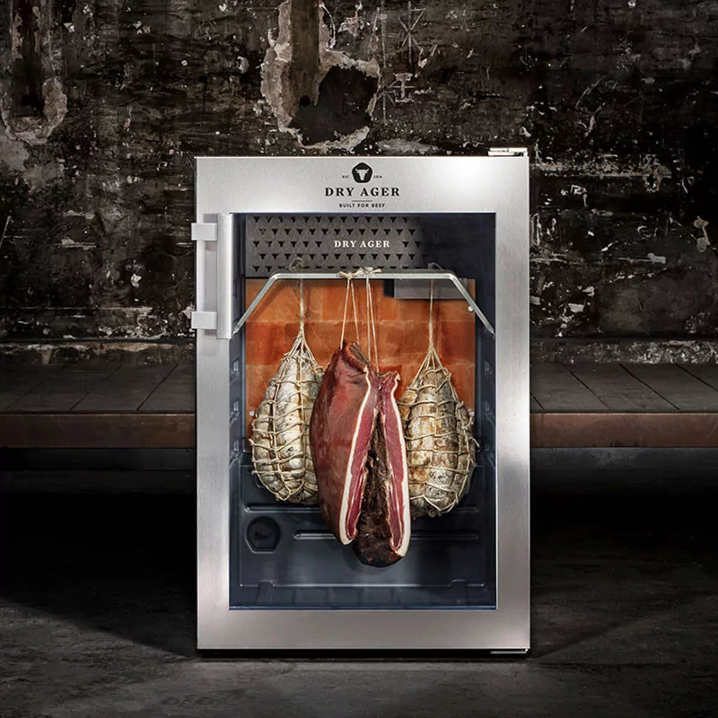 Les caves à maturer Dry Ager peuvent être utilisées pour affiner du jambon et de la charcuterie. Le taux d'humidité (60 à 90 %) et la température (0 à +25 °C) peuvent être réglés électroniquement et il est possible d'activer ou de désactiver la stérilisation. Les armoire Dry Ager peuvent également servir à conserver le fromage.