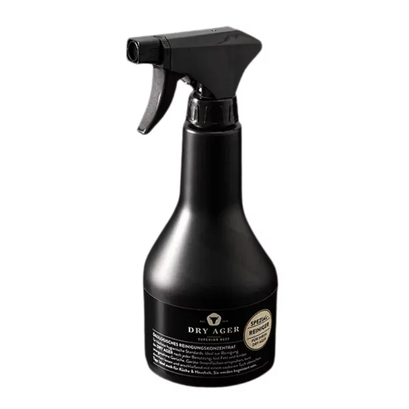 Maintenez votre cave de maturation Dry Ager dans un état d'hygiène irréprochable grâce au nettoyant désinfectant officiel de la marque. Ce spray professionnel de 500 ml, prêt à l'emploi, est spécialement formulé pour répondre aux exigences de la maturation à sec (dry aging) des viandes et poissons.