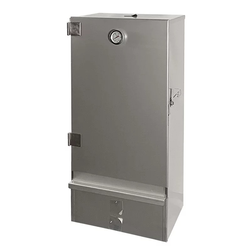 Le fumoir armoire Smoki 3 est un fumoir tout inox pour le fumage à froid de la viande ou du poisson qui convient à un usage privé ou occasionnel. Une hauteur de 80 cm et 3 niveaux pouvant accueillir 2 grilles de 360 x 260 mm pour le fumage à plat et une grille pour le fumage suspendu.