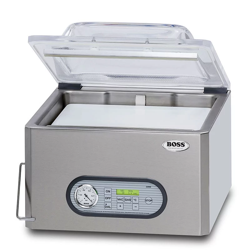 Cette grande machine sous vide du fabricant allemand Boss, convient parfaitement au travail à la carte, au portionnage et à la cuisson sous vide, pour une qualité de produit fini optimale. C'est une machine fiable et simple d'utilisation, idéale pour un travail en continu dans la restauration ou en boucherie charcuterie. Avec sa grande barre de soudure de 42 cm et sa généreuse chambre à vide, elle facilite réellement l'emballage sous vide de produits de grande taille. En quelques secondes, elle peut mettre sous vide tout type d'aliments secs ou liquides en un ou plusieurs sacs sous vide. Elle répond parfaitement aux exigences des professionnels des métiers de bouche qui souhaitent profiter d'une plus grande capacité d'emballage et d'une grande variété d'applications.