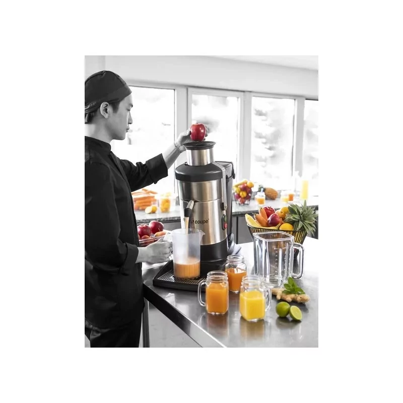 Cette centrifugeuse puissante et silencieuse du fabricant français Robot Coupe permet de préparer facilement et rapidement des jus de fruits et de légumes frais, homogènes et savoureux (25 cl en 6 sec.). Avec son débit de 160 litres de jus par heure, cette centrifugeuse conçue pour un usage intensif convient aussi bien aux bars qu'à la vente à emporter, aux restaurants et aux collectivités.