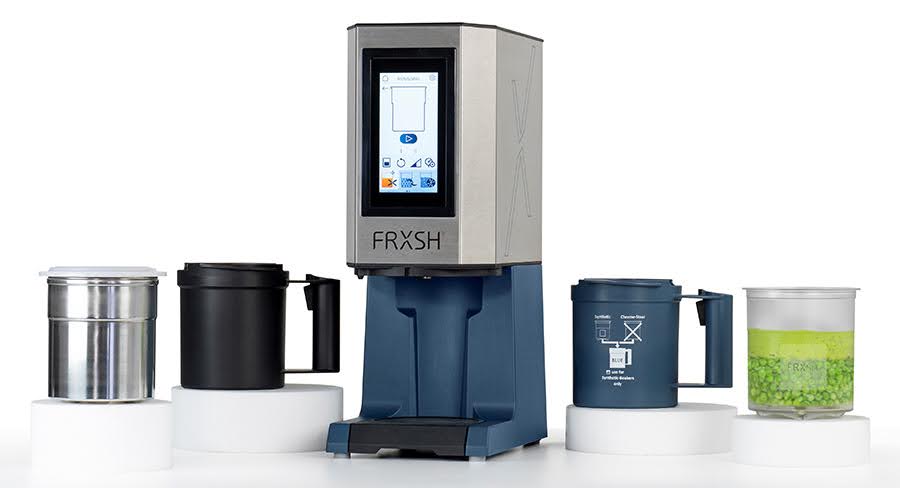 Les deux machines utilisent des bols inox ou synthétiques… mais elles ne se limitent pas à leurs propres accessoires, les bols Pacojet et Frxsh sont interchangeables.
